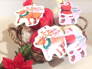 お次は、サンタさんやトナカイがプレゼントの袋を持っているようなかわいいパッケージのプチギフトです。