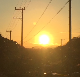 私は田舎に帰省しておりました。まぶしすぎて前を向けない程の初!夕日と格闘しながら車中から写真をとりました。なんだか有難い夕日に思わず手を合わせてしまいました!