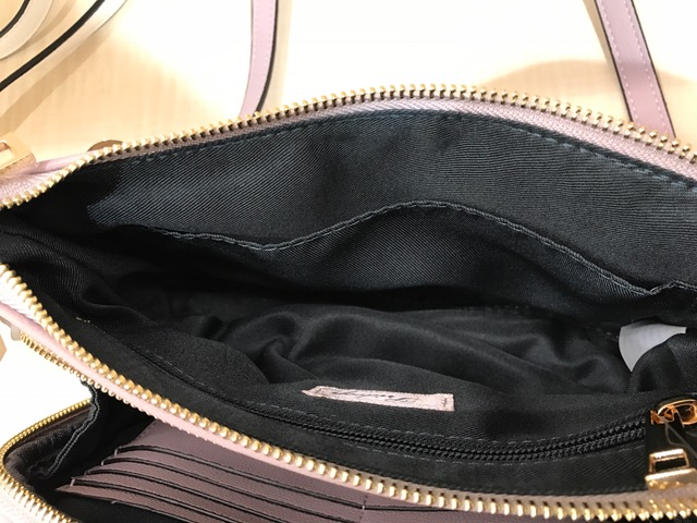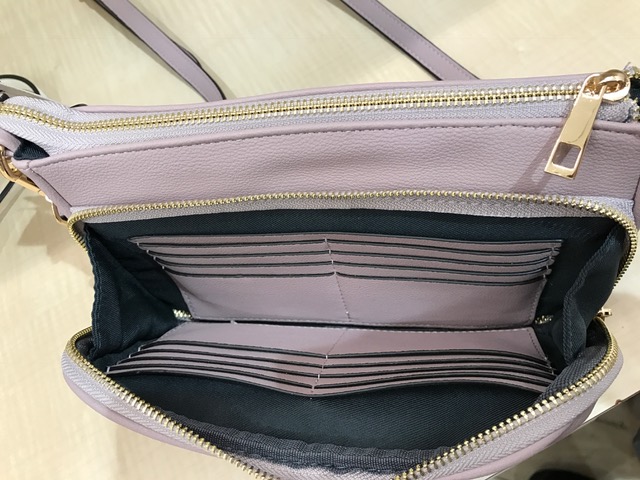 お財布以外にも中央と後ろの3層になっていて、見た目のコンパクトさ以上にたくさんの荷物を収納できますよ。