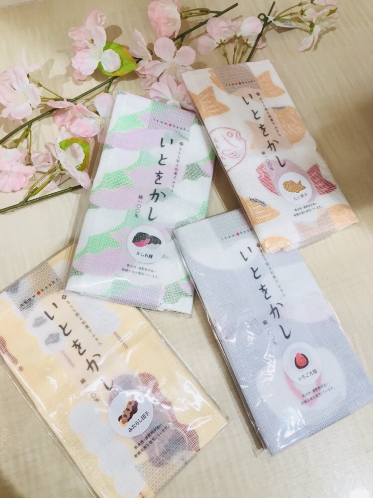 みたらし団子、かしわ餅、いちご大福、たい焼きと、可愛らしくてキュートな柄はプレゼントにも喜ばれること間違いなしです♪