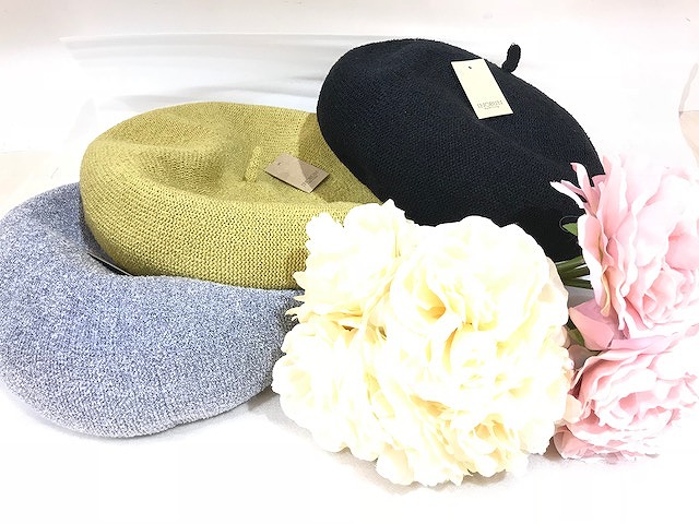 秋冬人気だったベレー帽も、春夏用に涼しげな生地が登場しました。