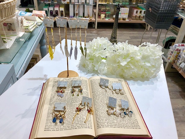 天然石を使ったピアスやフランスのビンテージの羽根を使ったボヘミアンなピアスがオススメ