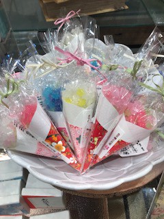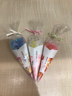 こちら、こんぺいとうの花束!ぶどう、いちご、ももの3つの味があります☺️