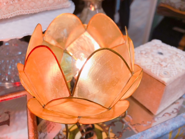 カピス貝を使ったロータス型のランプで、