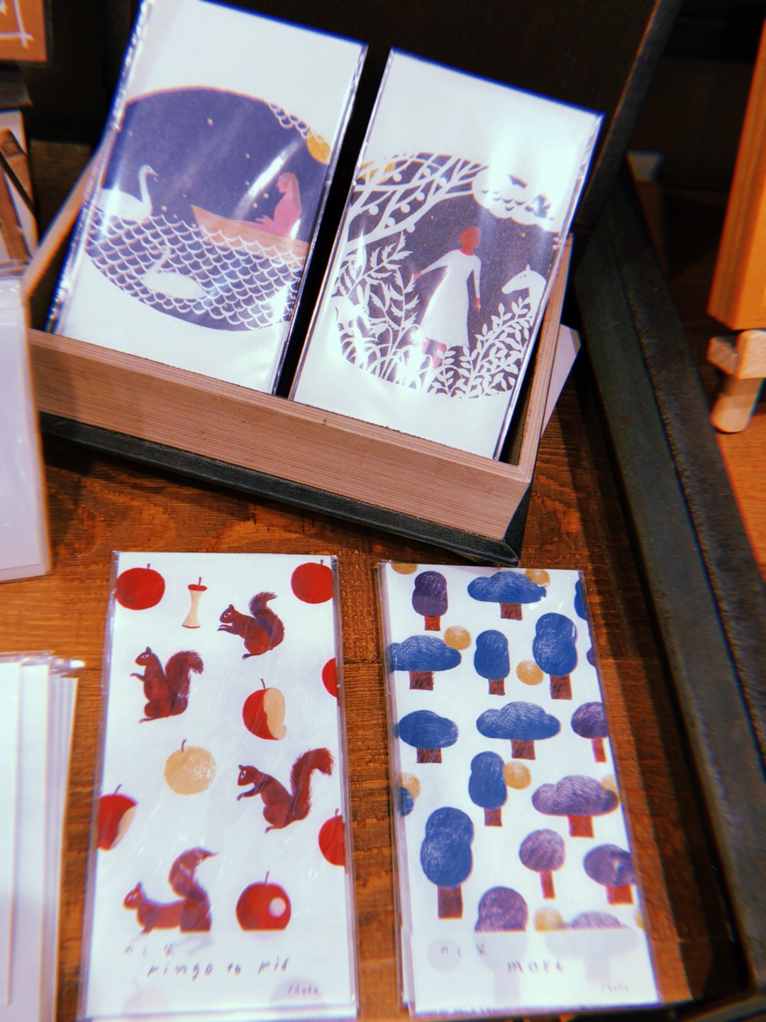 先程ご紹介したグリーティングカードの絵柄に加え、素朴なリスや森の絵柄があります。
