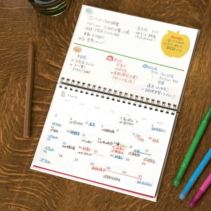 予定を書きながら、思いついたアイデアを沢山書き込めます!お出掛けの思い出や、