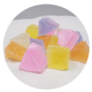 こちら、琥珀というお菓子なのですが、その名の通り宝石のような見た目が特徴です。表面を砂糖のコーティングが覆っており、中は少し固めのゼリー、寒天のようになっております。
