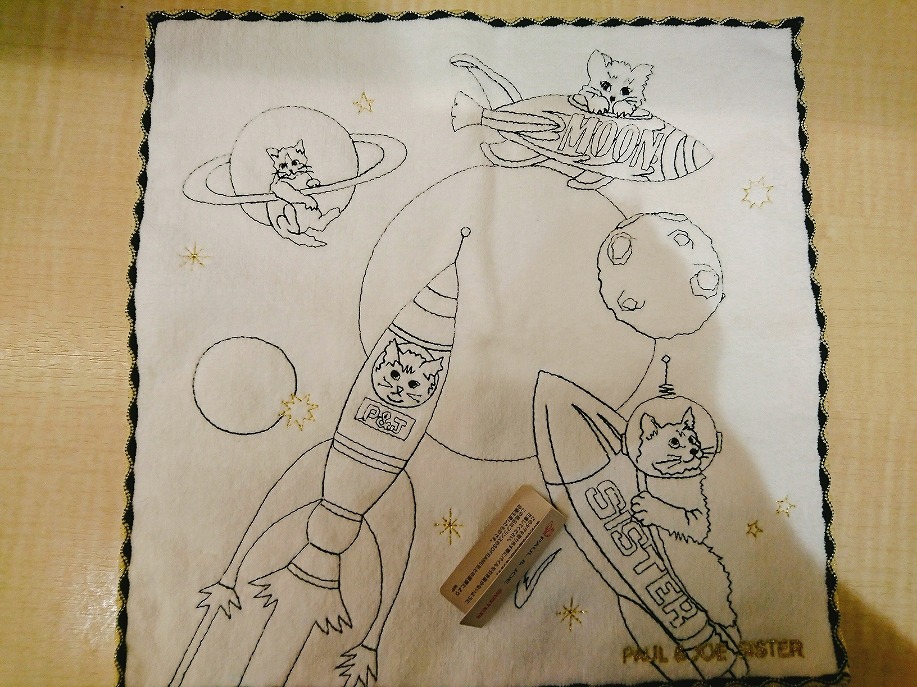 ポール&ジョーの新作コレクションの宇宙を旅をする猫達がテーマのスペースキャット トラベラーズのタオルハンカチとガーゼハンカチです。