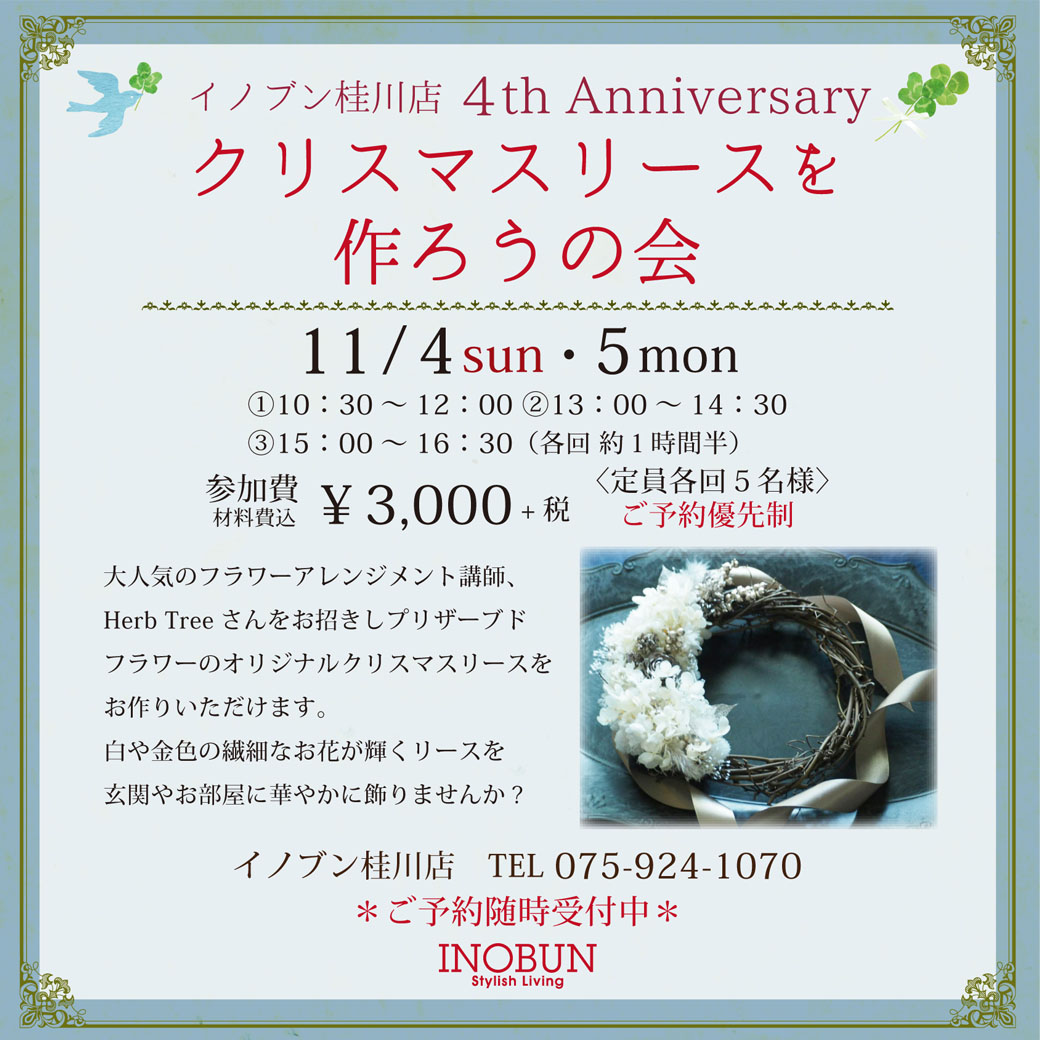 11/4(日)5(月)クリスマスリースを作ろうの会