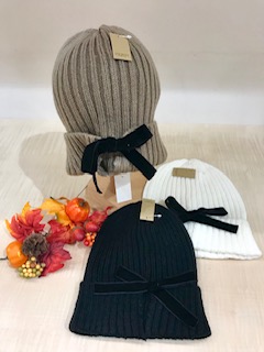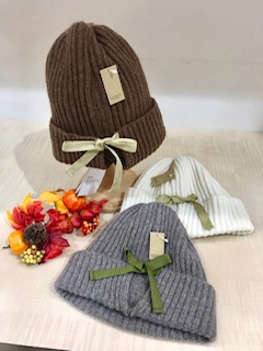 こちらは後ろにリボンがついた可愛らしいニット帽です。