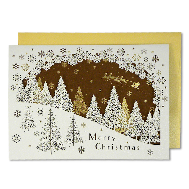 金色の部分は箔押し、白色の部分は切り絵になっているので、とても繊細で煌びやかなクリスマスカードです。