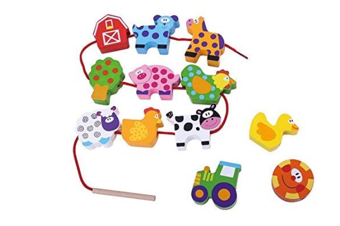 可愛い動物達を穴に紐を通したり、積み木にしたり並べたり。遊びかたは色々〜