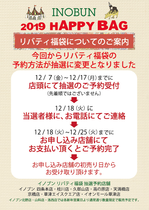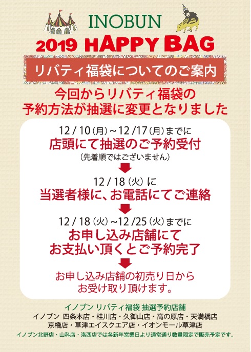 本日はイノブン桂川店より、来たる2019年の幕開けを飾る、嬉しい福袋の予約のご案内です