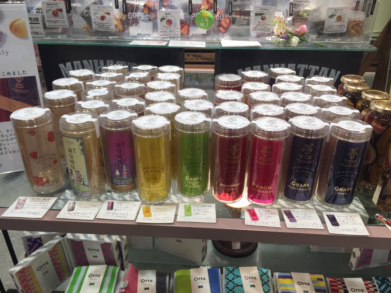 こちらです!左からローズ&桃、ぶどう(2種)、レモン、マスカット、あまおう苺、桃、ベリー、巨峰です。