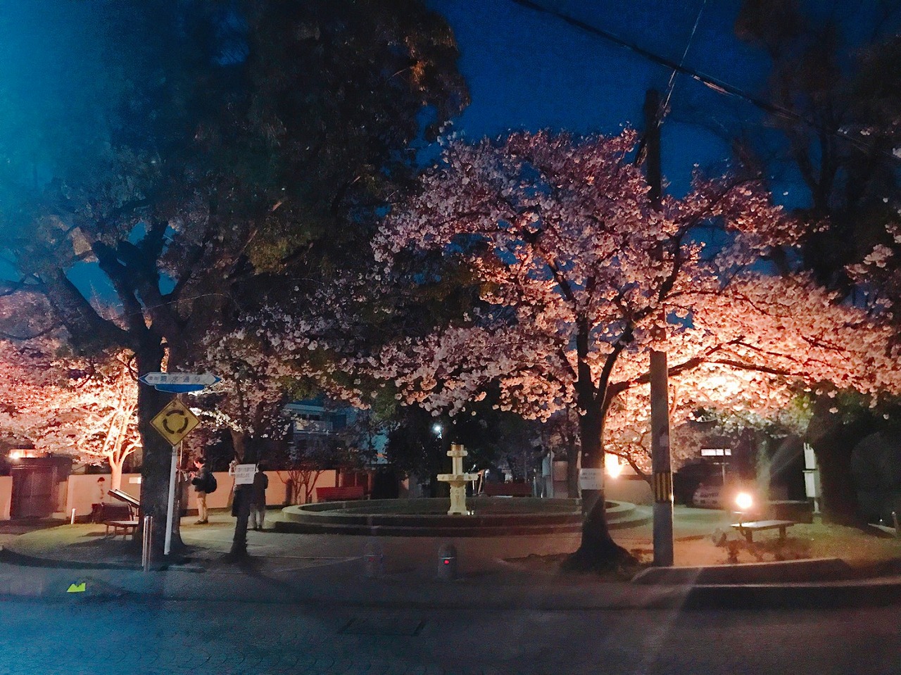 夜になると道や公園がライトアップされていて、夜桜もとってもキレイです。
