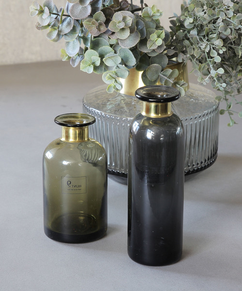 真鍮とガラスの異素材と薬品瓶のような暗めのグラデーションが美しいフラワーベース!