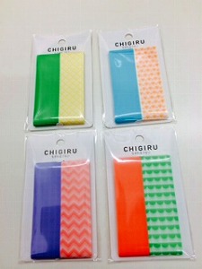 CHIGIRUは、従来の付箋の問題点を解消するものとして開発されました。長方形の薄い板状の芯に、1.5mの全面のり付き付箋が巻かれた形状のため、安定してメモすることができ、めくれにくくなっています。