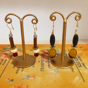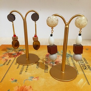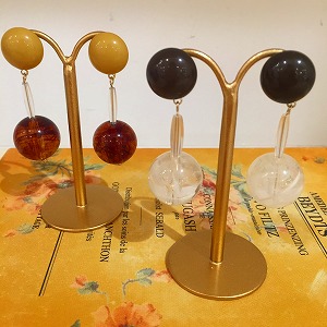 形の異なったヴィンテージのアクリルパーツを組み合わせたピアスです☆