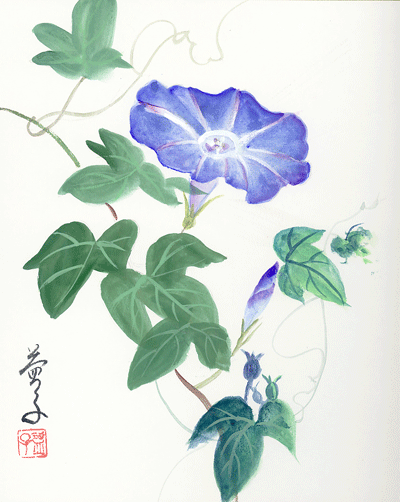 今月のテーマは【朝顔、風景の花を描く】です。