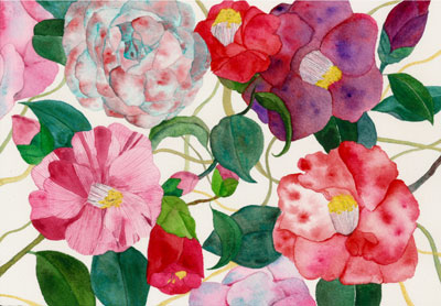 水彩技術は独学で学び、花が大好きなので花の絵を描くことに幸せを感じ、