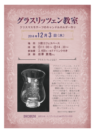 さて、今日のご紹介は、12月3日に開催しますワークショップ、『グラスリッツェン教室』のお知らせです。