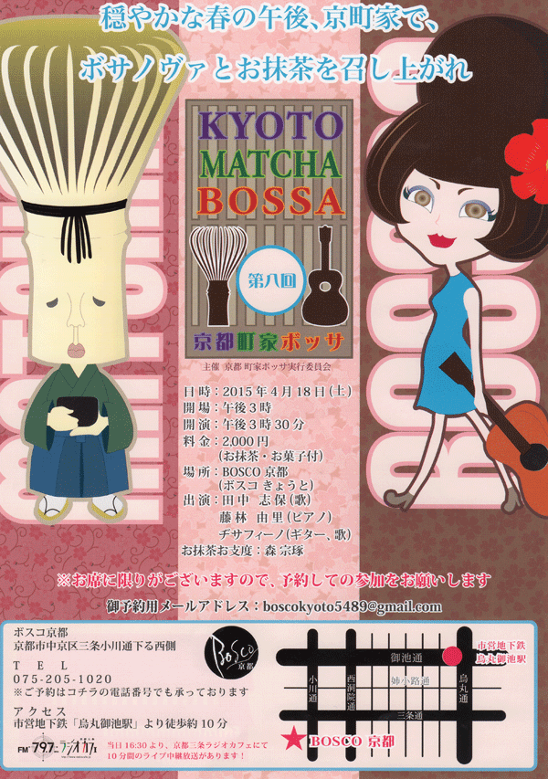 “京都町家BOSSA”さんが生Bossa Novaのコンサートを開催してくれました。