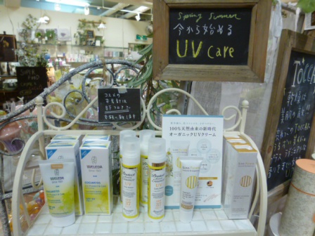 ナチュラルコスメのUVクリームも豊富に入荷しています。