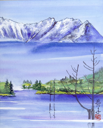 この絵は私の大好きな上高地の大正池から穂高を望む構図でしょうか。