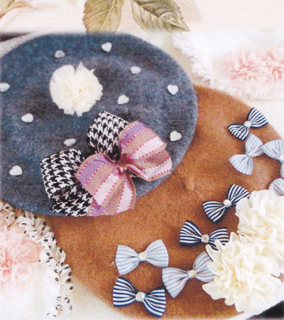 4色のベレー帽、もしくはキャスケット帽をお選びいただき、おリボンやスタッズ、シフォンモチーフをお好みでチョイス♪