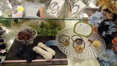 スワロフスキーや可愛いお花のビーズをワイヤーで留め付けて作ります。