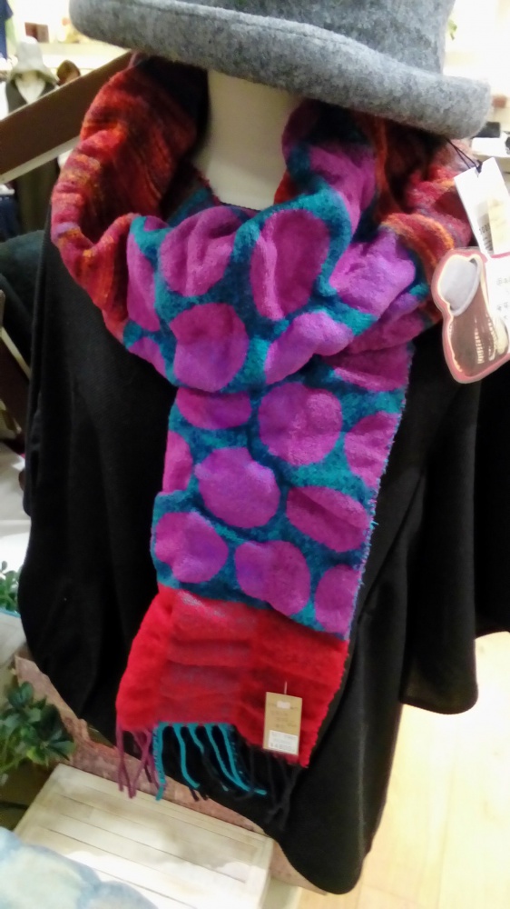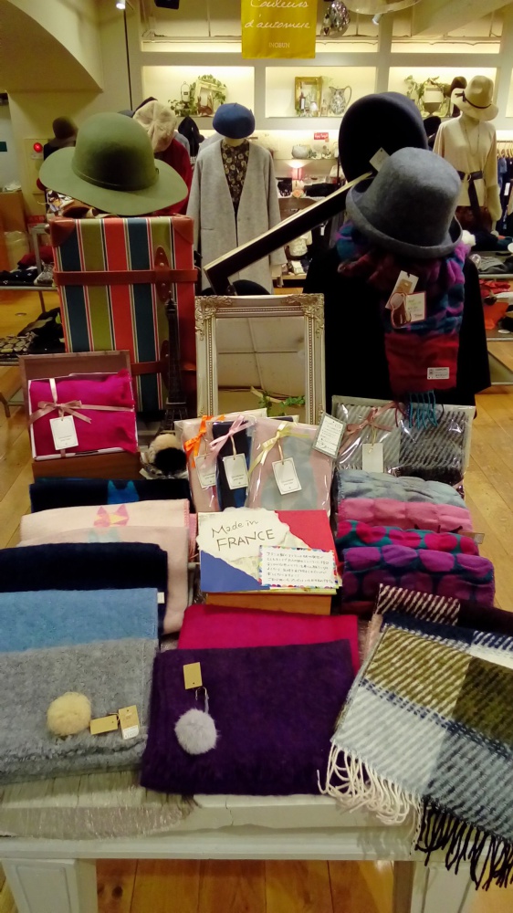 フランス製のマフラーは柄や発色がとてもキレイで大人の女性らしさがたくさんつまっています。鮮やかな色のマフラーを巻くと気持ちまで明るくなりお出掛けが楽しくなりますよ!
