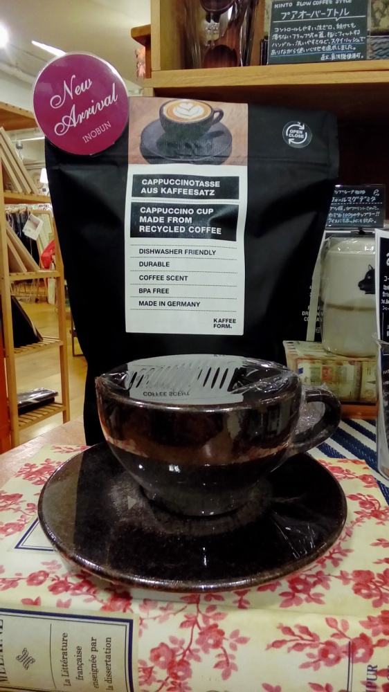 ベルリンのカフェから提供されたコーヒーの抽出かすで作られるこちらのコップ&ソーサーは、すごく良い香りでコーヒー好きにはたまりません。