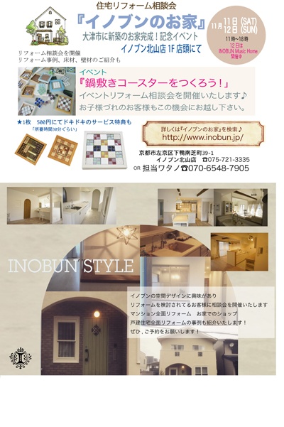 「イノブンのお家」リフォーム相談会のお知らせです。