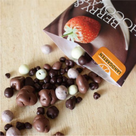 ランドガルテンのチョコレートはベルギー産の最高水準のものを厳選使用しています。独自のレシピを開発して、350~500層ものコーティングを重ねました。
