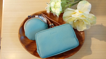一つ目のおすすめは、絶妙なライトブルーのガマグチとバッグチャームです✨