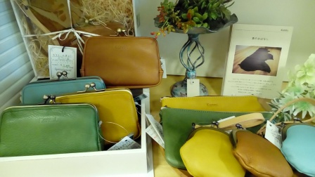1Fフロアでは、様々な色や柄の素敵な革小物をたくさん取り揃えております。