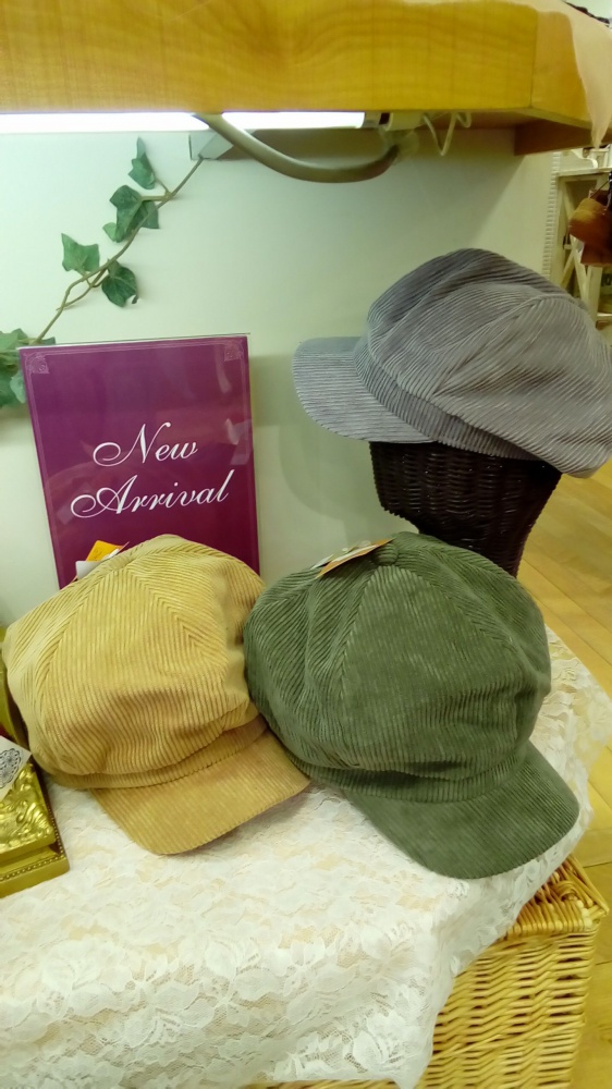 コーデュロイのキャスケットは秋らしい素材でふっくらボリュームがあり、コーディネートの主役になるアイテムです❤