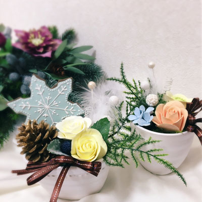 クリスマスにもお飾り出来るよう、ウィンターアレンジをお楽しみ頂けるようなパーツもご用意しています。