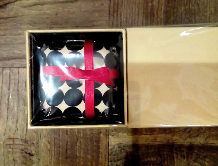ぱたんと閉じられるので、お箱にいれてラッピングさせていただきます。