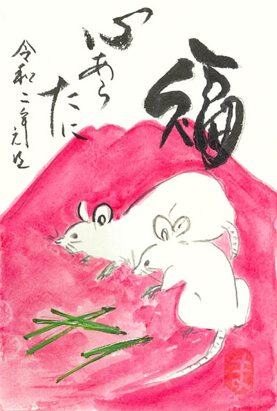 今月のテーマは【松竹梅、年賀状を描く】です。