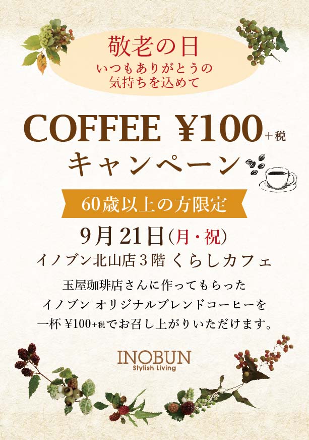 ぜひ、シルバーウィーク最終日は、イノブン北山店でお買い物をお楽しみください♪