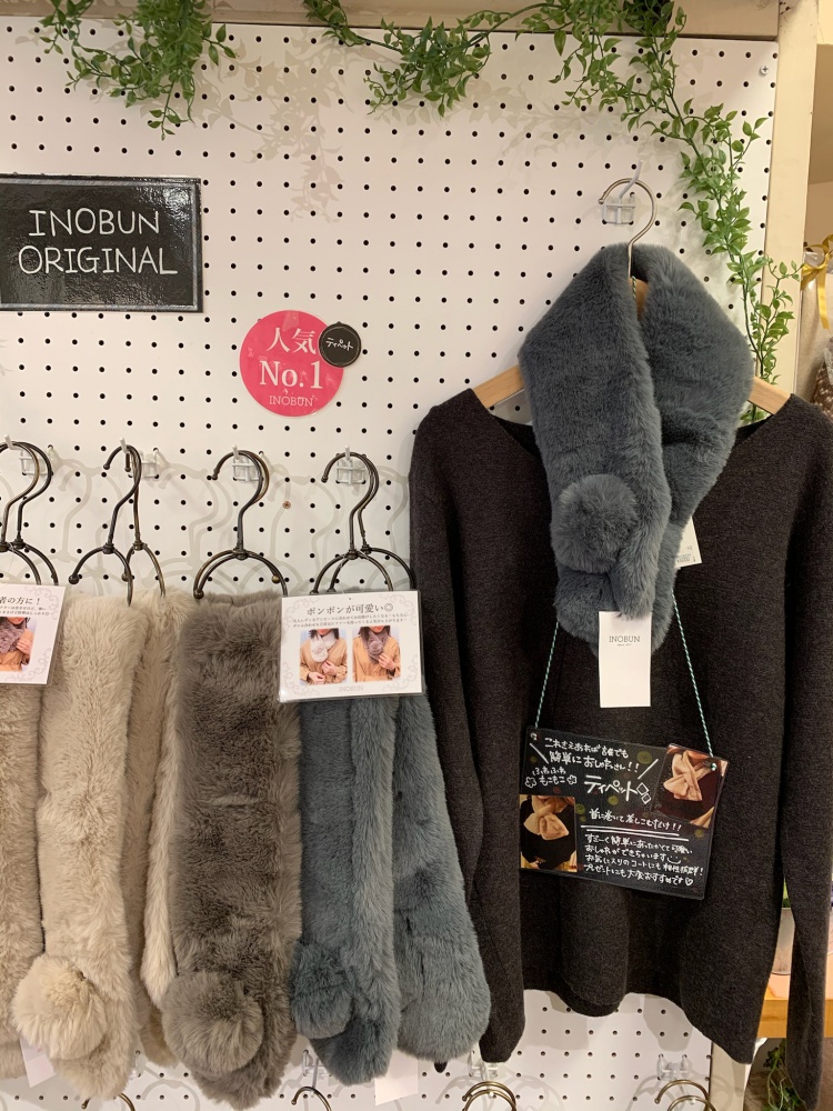 また、イノブンオリジナルのマフラーやティペットなどもお買い求めやすくなっております^^