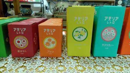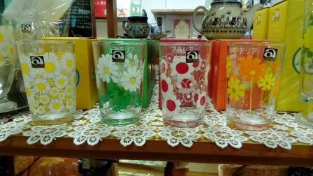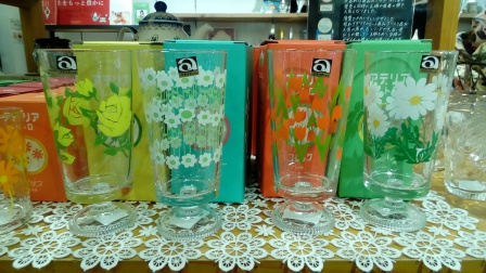 それぞれのグラスに箱がついており、箱からもレトロな雰囲気が漂っています。種類によって箱の色が異なっているので、たくさん並べて飾っておくのもとてもかわいいです♪