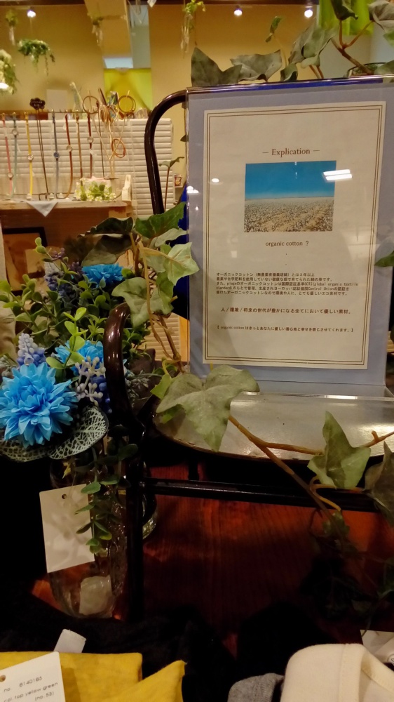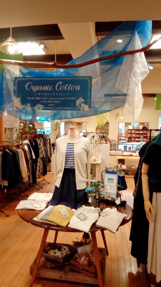 ただいま1Fではオーガニックコットンのお洋服を色も種類も豊富に取り揃えております!