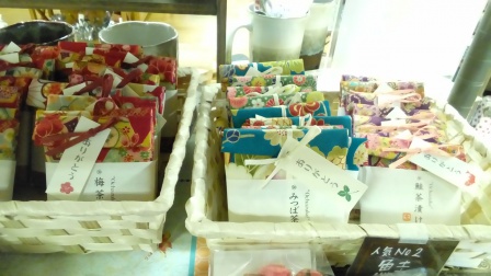 こちらは「ありがとう」の気持ちがより伝わるお茶漬けです。オシャレな和柄の布に包まれたお茶漬けにはありがとうのタグがついており、梅・みつば・しゃけなどの味があります。それぞれ柄が少しずつ違うので、お好みの柄をお選びください♪
