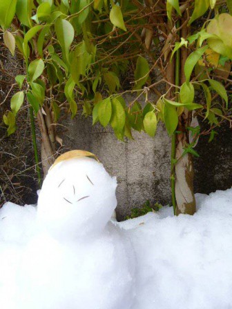 家の近所にはあっちこっちにいろんな雪だるまが作ってあって、雪だるまストリートになっていました。