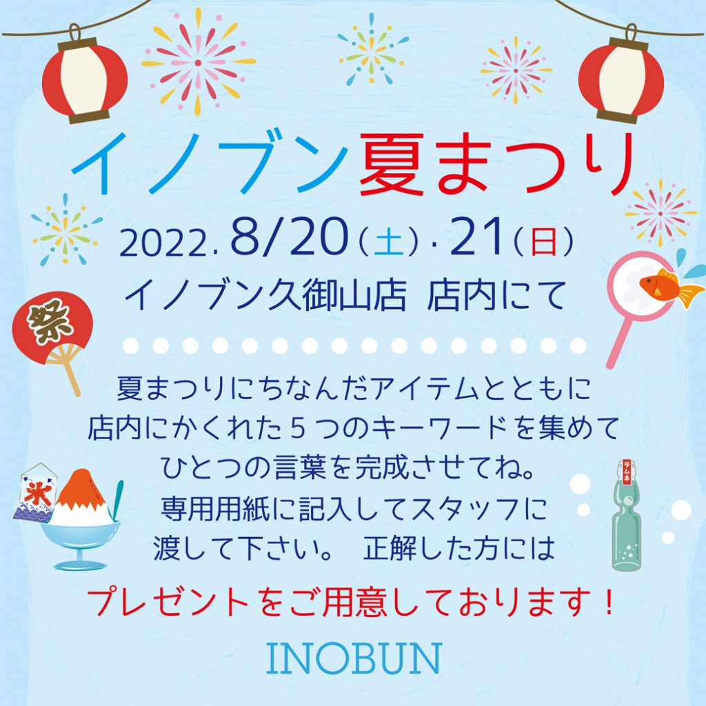 イノブン久御山店では、七夕までの2日間(5日・6日)、ちょっとしたプレゼントをご用意して皆さまをお待ちしております☆