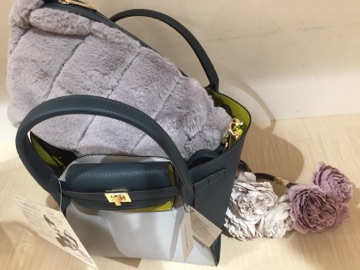 こちらのバッグは落ち着いたバイカラーの バッグで、実はポーチ付きなんです!