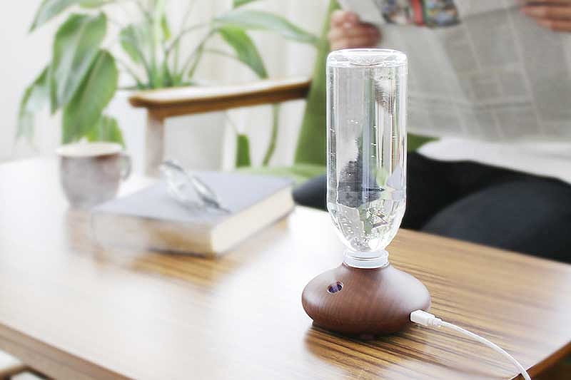 こちらはペットボトル加湿器で、ご自分の好きなペットボトルでお楽しみいただけます。ペットボトルの種類や柄にこだわってもおしゃれですよね。お手入れも楽ですよ。