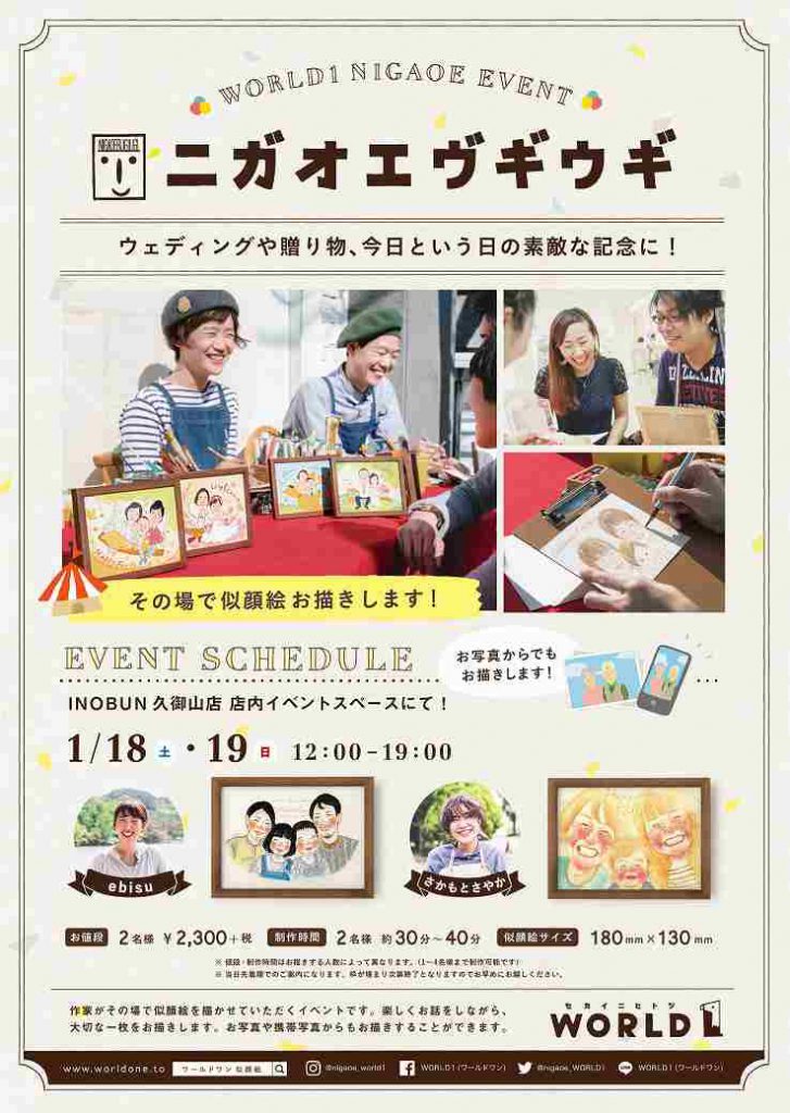 今日から仕事初めという方も多いとは思いますが、みなさなは素敵な年末年始を送られましたでしょうか?                        たくさん思い出ができたかなと思いますが本日はそんな方にぜひオススメしたいニガオエイベントのご案内です。